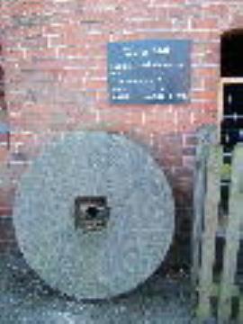 Shugborough Farm Mill, Shugborough Park, Colwich - millstone in yard and info on waterwheel quantity