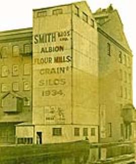 Victoria Mill, Dartford, downstream view with boys on bridge