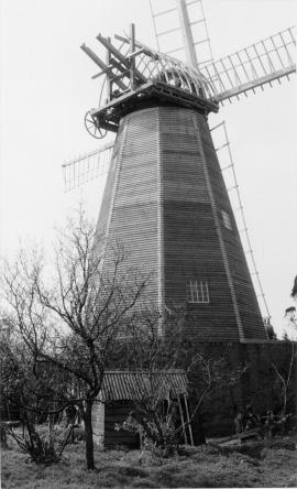 / Smock mill, West Kingsdown, with rear view of cap