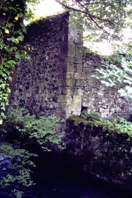 Stoke Bottom Paper Mill, Somerset, ruins, west wall with the stream below