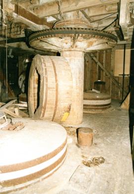 Victoria Mill, Dartford, downstream view with boys on bridge
