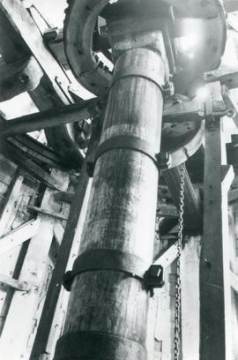 A photograph showing the upright shaft and wallower of Ashley Mill near Dalham, in Cambridgeshire. Photographed by Kenneth G. Farries in August 1957.