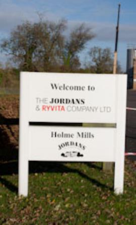 “Welcome to Jordans” sign, Holme Mills, Holme