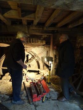 Wickhamford Mill, Wickhamford – William Waddilove (L) and John Poulter in meal floor of the mill