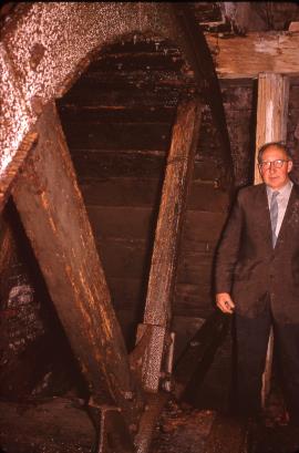 Wood Mill, Yoxall – Jack Arch (the then owner) by the waterwheel