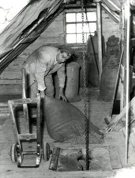 / Woodbridge Tide Mill, Suffolk, using sack hoist in roof