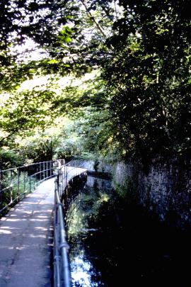 / Wookey Hole Mill, east leat to turbines, view to north
